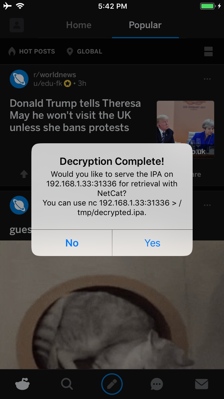 Cs-iPhone:~ root# bash bfinject -P Reddit -L decrypt