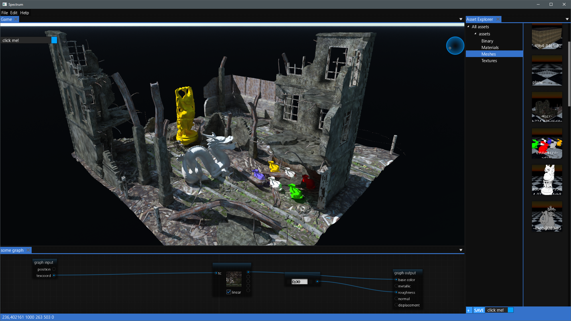 Spectrum Features: DX12 FrameGraph Easy resource binding Automatic resource transitions Async Compute Asset System GUI Material Graphs DXR Sparse Voxel GI with "infinite" bounces GPU Occlusion Culling https://cheater.dev