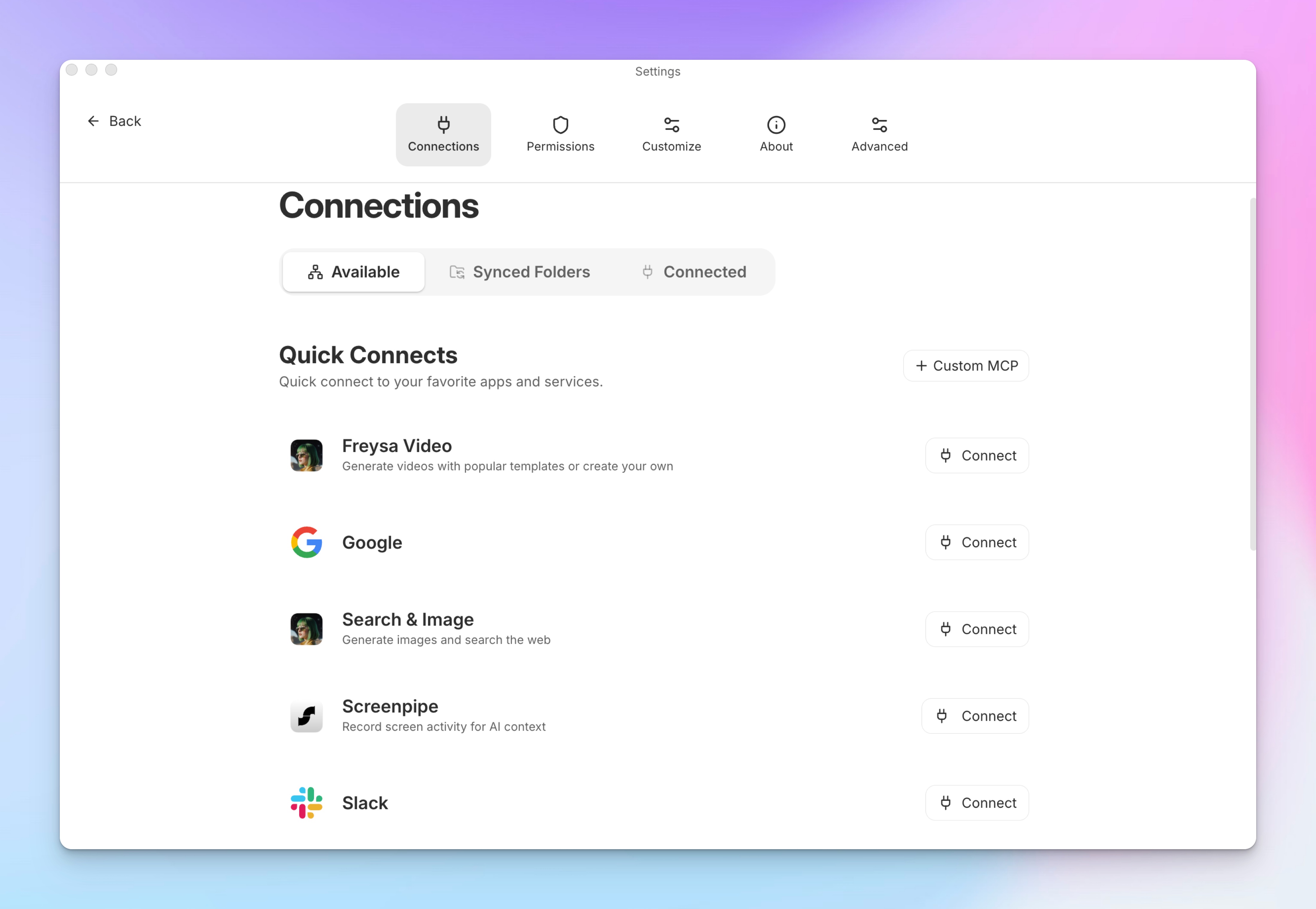 - Default MCP server support (Gmail, Google Drive, Calendar, X, Slack, Screenpipe)