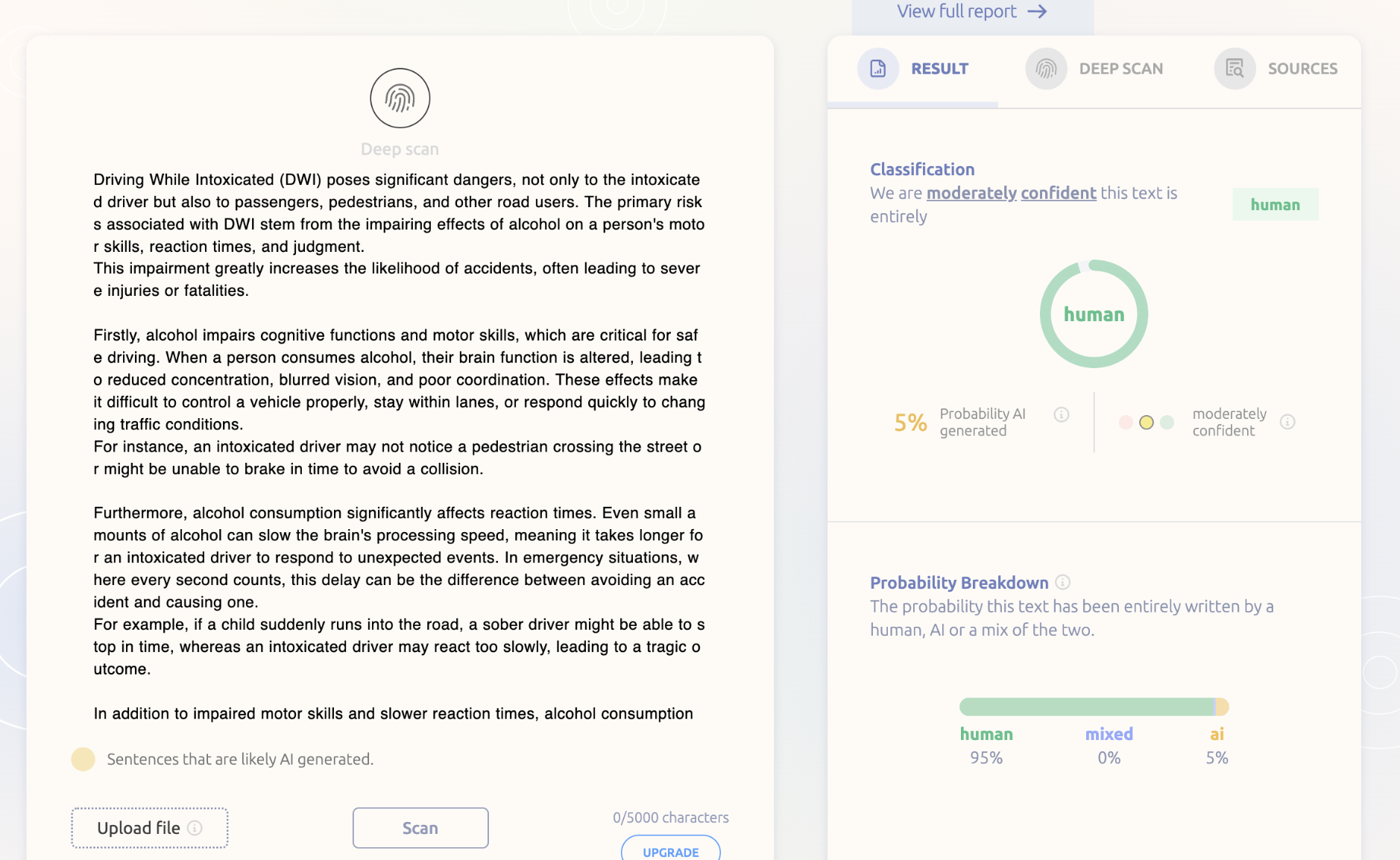 Here are some visual examples demonstrating the effect of Unicode spacing on AI detection tools: