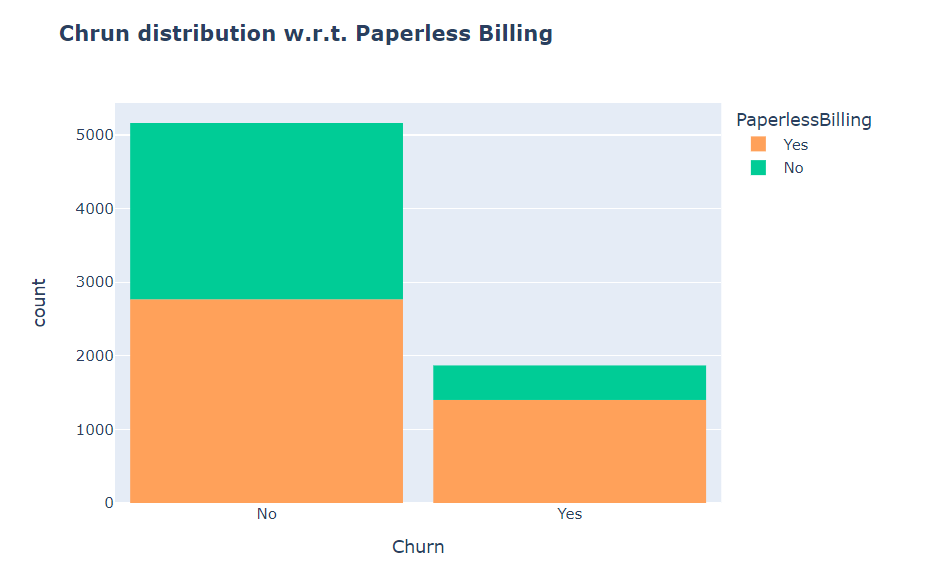 As shown in following chart, customers with no TechSupport are most likely to migrate to another service provider.