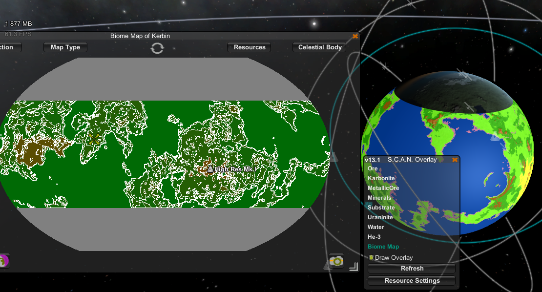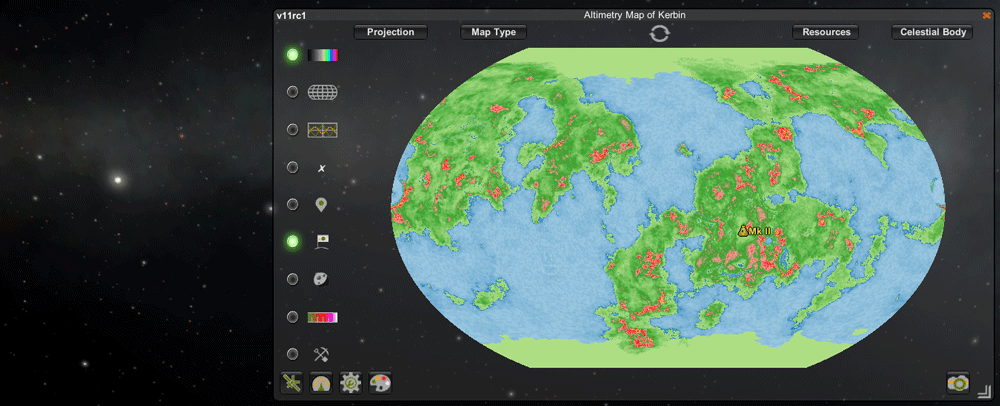 - It allows you to see surface details from orbit from an interactive, zoom-able map. This will help you plan your missions (for example, landing near a divider between two or three biomes) and provide critical information you need to attempt a safe landing (for instance, the slope map will help you avoid treacherous hills)