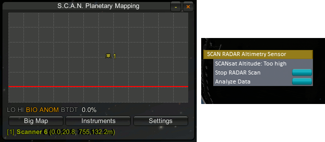 SCANsat can scan for a few basic types of data. All of these (non-resource) scans are shown as indicators on the Small Map. For more information about basic SCANsat scanning checkout the wiki