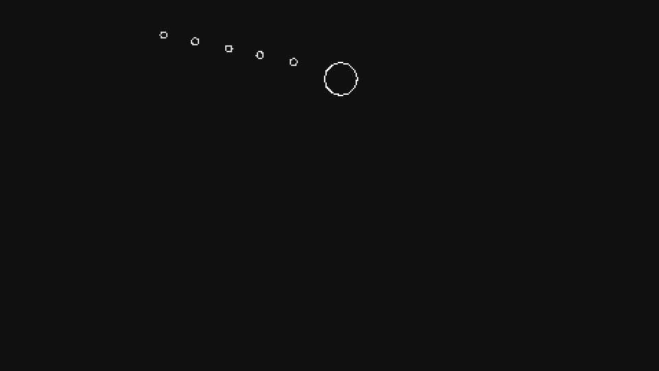 endDifferent tween modes like 'in-out-cubic' instead of 'linear', for instance, will make the trail have a different shape. I used the linear one because it looks the best to me, but your preference might vary. The draw function for this is just drawing a circle with the appropriate color and with the radius using the r attribute.