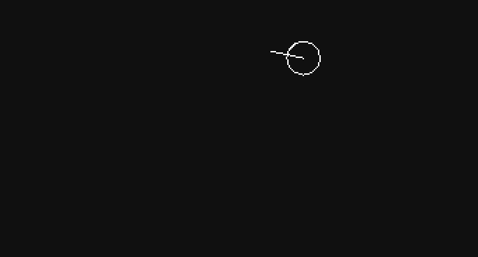 endAnd this should have nothing unexpected. We use the same d variable that was defined earlier to set the Projectile's initial position, and then pass the player's angle as the r attribute. Note that unlike the ShootEffect object, the Projectile won't need anything more than the angle of the player when it was created, and so we don't need to pass the player in as a reference.