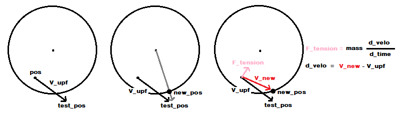 - New position after frame = (text_pos - hooked_node_pos).normalized * tether_distance + hooked_node_pos (new_pos)