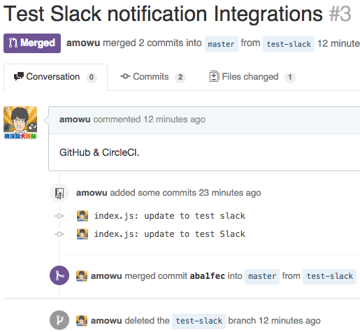 $ git push -u origin test-slack- CircleCI 通過測試,開啟一個 Pull Request