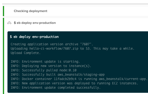 - eb deploy env-production這樣就能在 GitHub 的 master 支線有更新時,觸發 CircleCI 的自動建置、測試、然後部署。