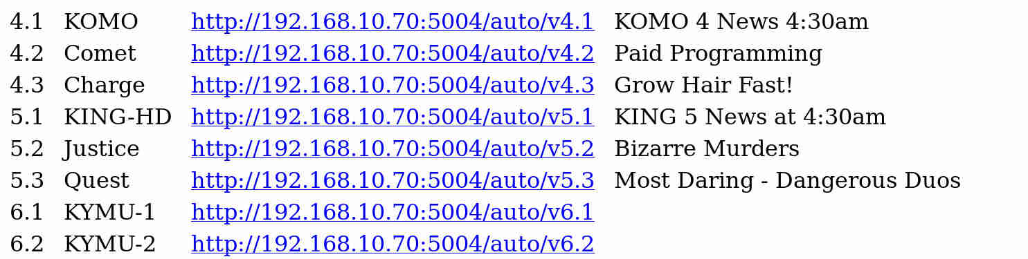 hdtvjs HDTVjs re-streams HDHomeRun via HTTP Live Streaming (HLS). Remote when not streaming Path: / Remote when streaming Path: / TV Path: /screen