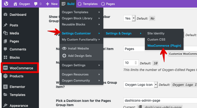 - Adds all Oxygen settings and settings tabs links to the Toolbar