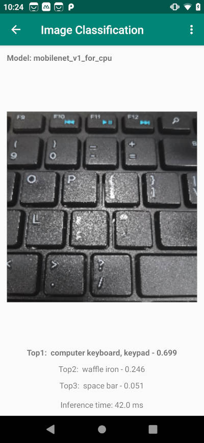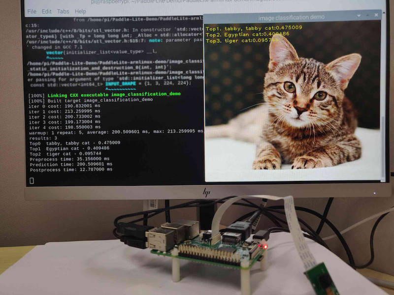 $ cd Paddle-Lite-Demo/PaddleLite-armlinux-demo/image_classification_demo $ ./run.sh armv8 # RK3399 $ ./run.sh armv7hf # 树莓派3B
