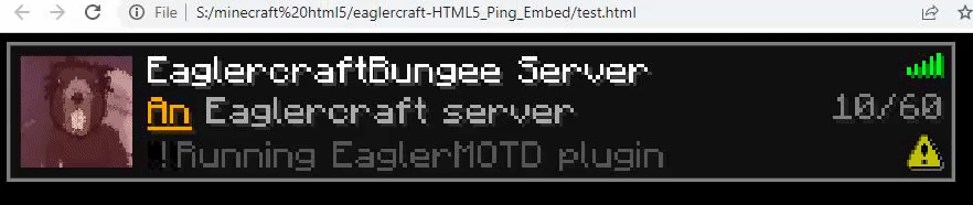 This allows you to easily embed your Eaglercraft server's ping, player list, and MOTD in a <div> element in an HTML5 document using the same style as the game's multiplayer screen