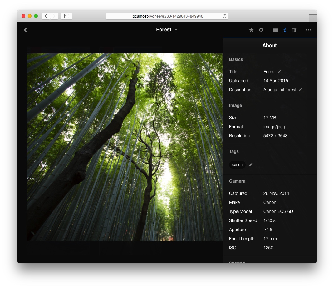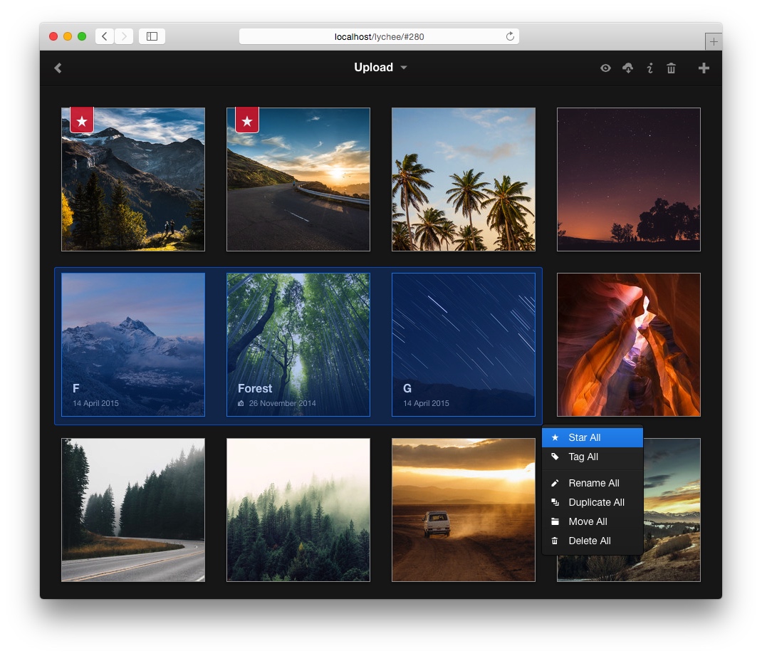 These shortcuts will help you to use Lychee even faster. Keyboard Shortcuts »