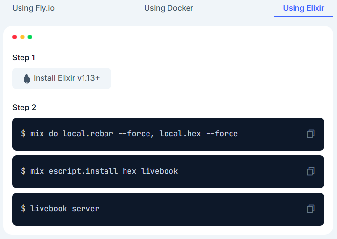The Livebook local install instructions don't work on Windows due to an error with Mix. The instructions are: