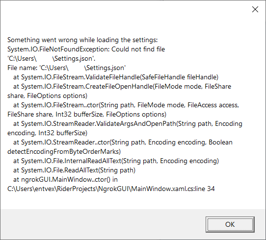 Starting ngrokGUI.exe works fine like normal, but when starting it from cmd it throws an error instead. It's the only time it throws this error and doesn't want to open.