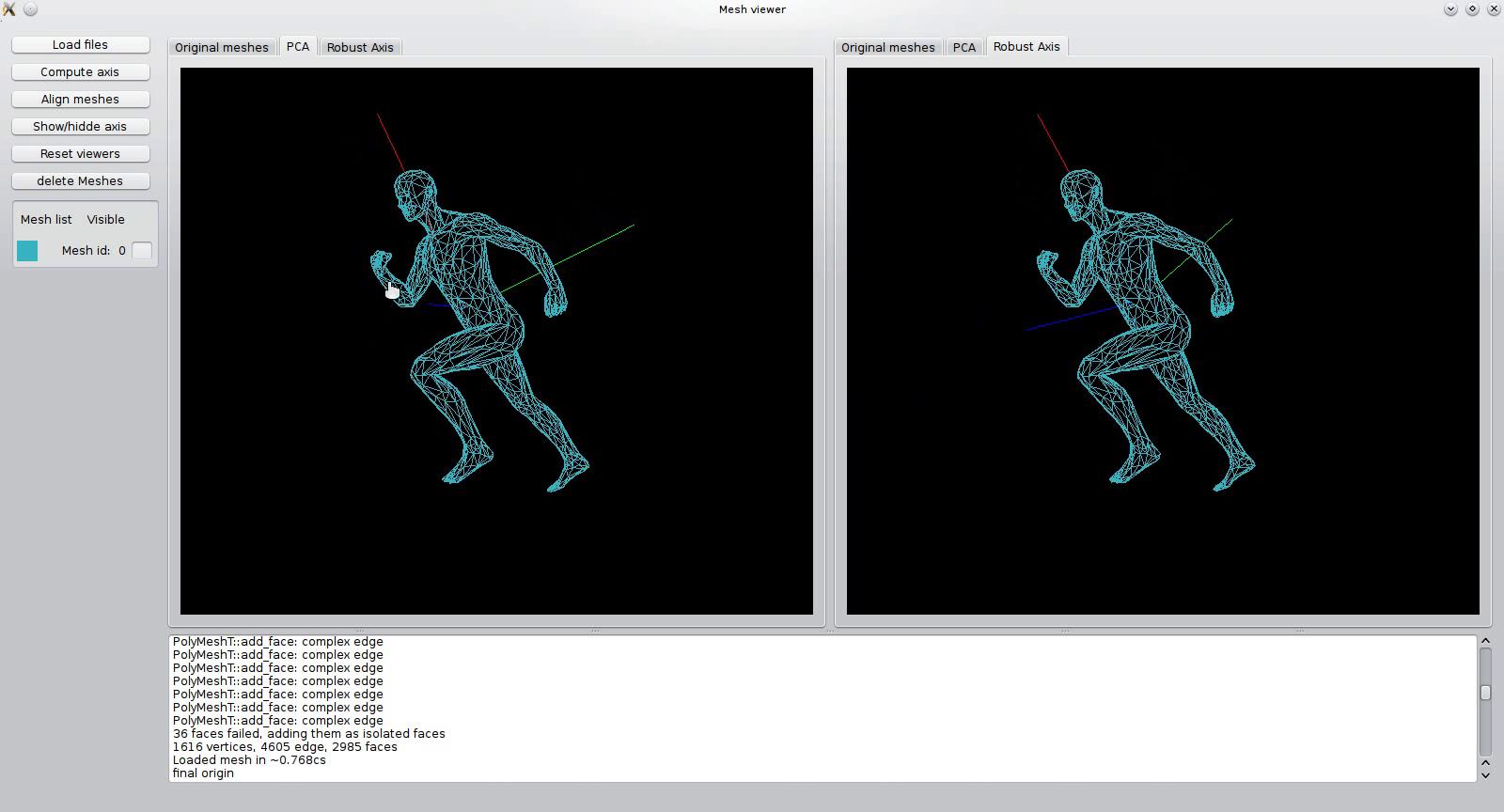 The aim of the project is to implement different algorithms to compute the axes of a mesh and evaluate how robust they are against noise and deformations from an original mesh.