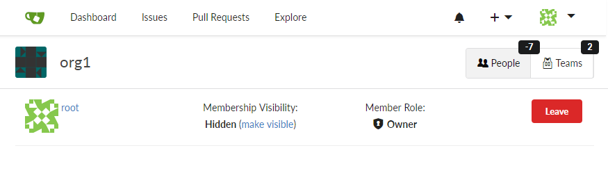 - Create new organization (e.g. org1). User1 will be owner, num_members = 1, num_teams = 1 (as expected)