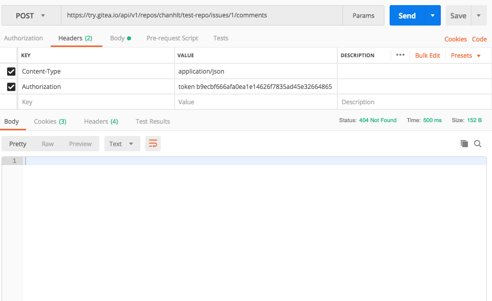 When I try to use API to add comment to a pull request.