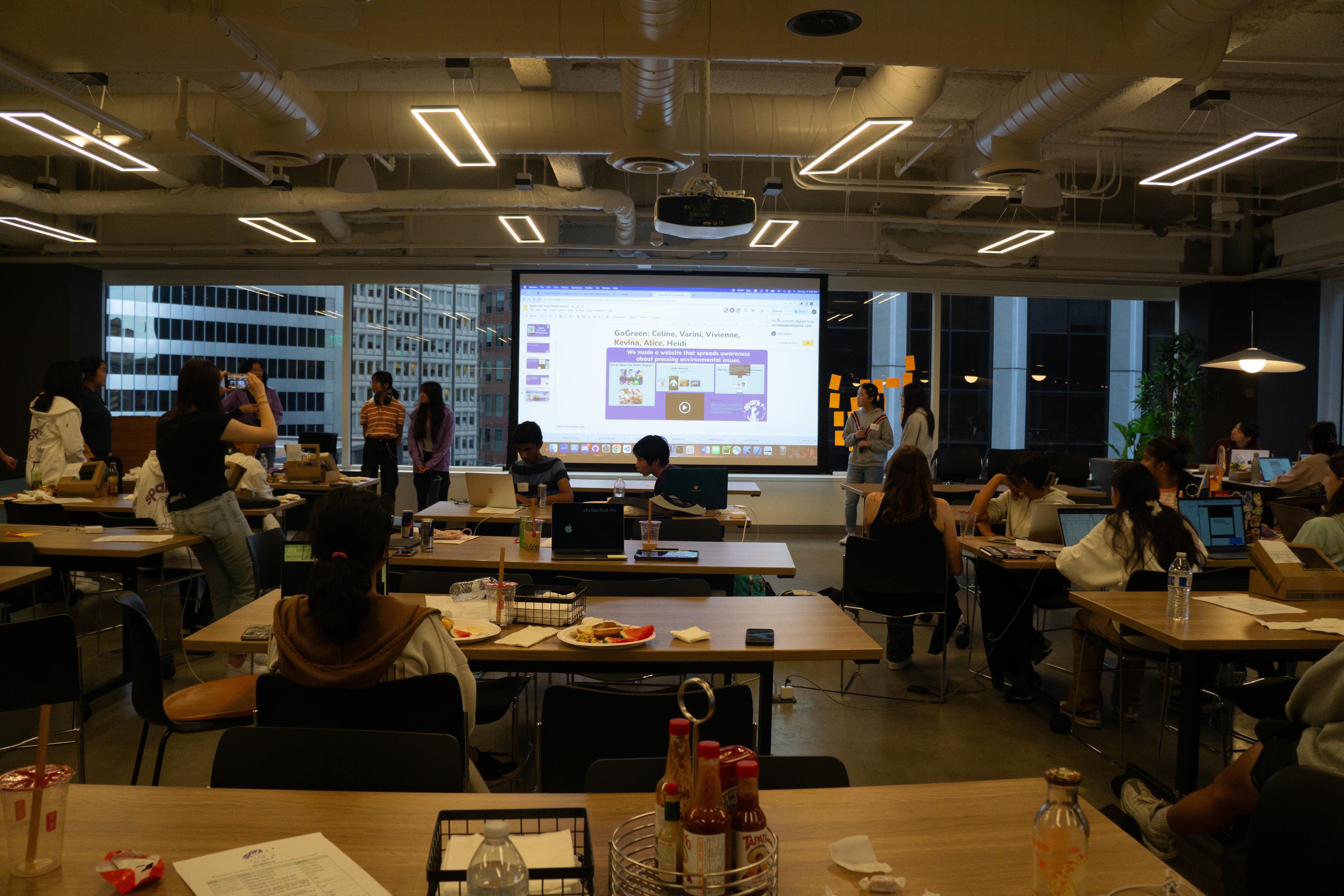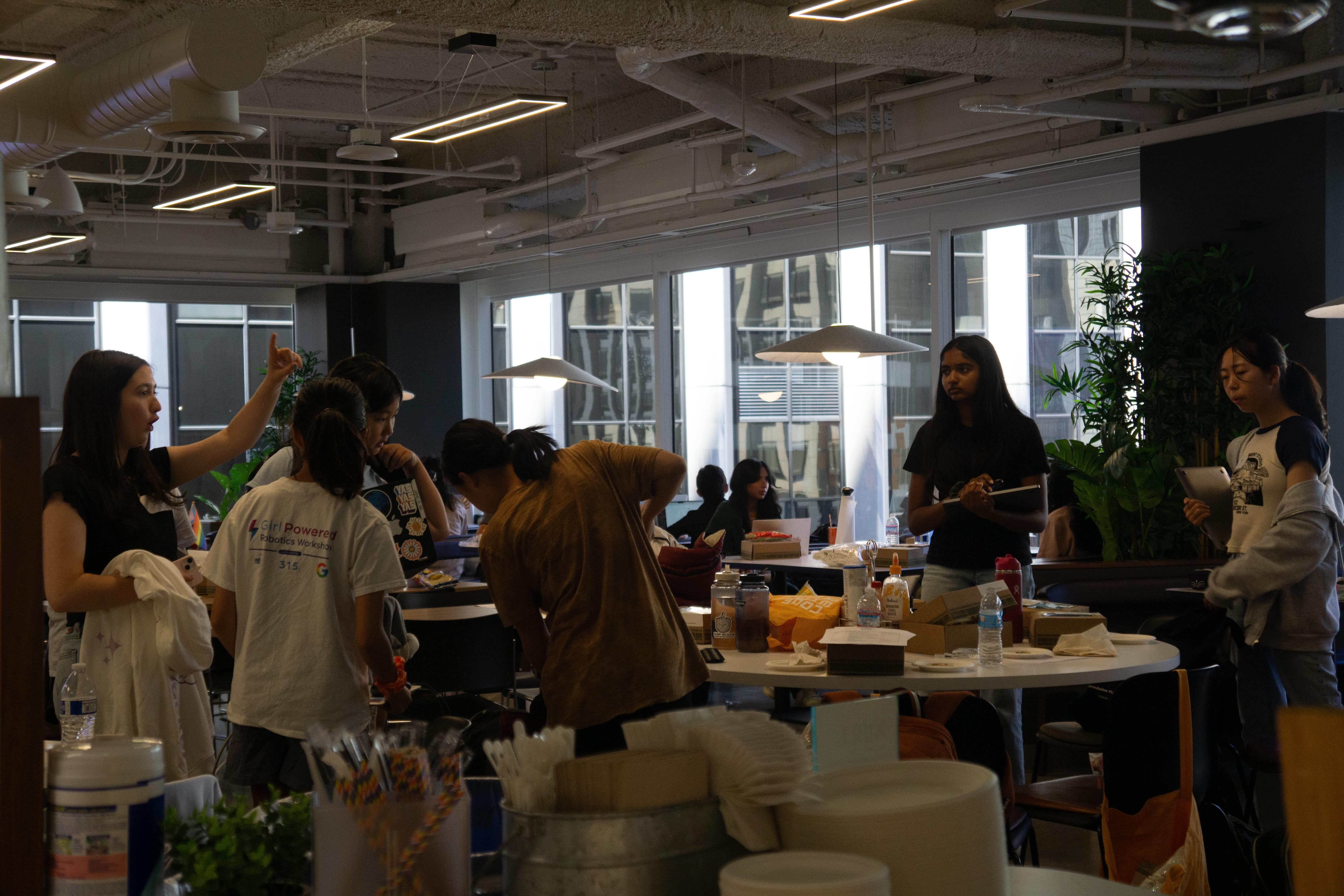 Maggie: The Sentry office was amazing. They had a main area, which is their cafeteria area, and then there was the kitchen area, so we used the kitchen area for serving food. And then the cafeteria area was where most people sat, but they could also spread themselves out through the rest of the space. The office also had meeting rooms and we used those meeting rooms for workshops and then at night, the rooms were more sleeping rooms even though I don't think many people actually slept!