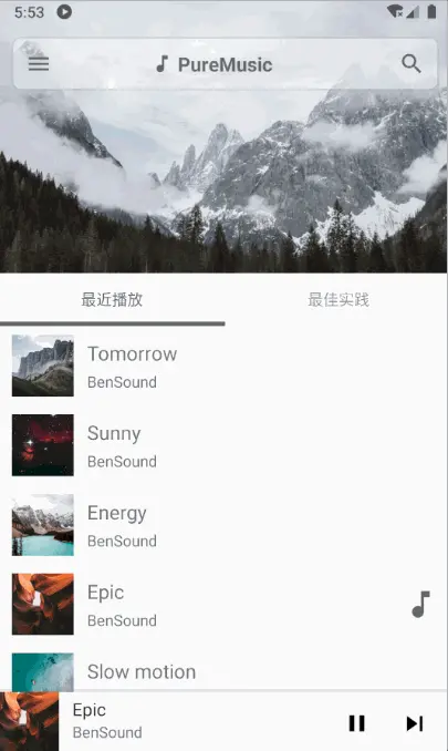 项目中使用的 音频素材 来自 BenSound 提供的 免费授权音乐。