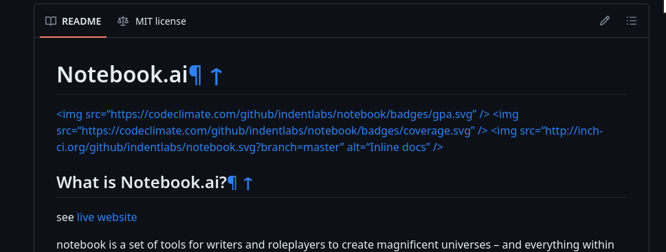 As the image makes clear, the badges are not rendering in the README but are instead displaying as HTML tags. Quick, easy fix on your end just letting you know.