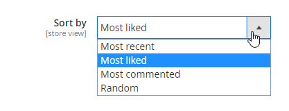 A: Store owner can quickly sort the photos from Instagram photo library, based on one of specific criteria as most recent, most liked, most commented, or random.