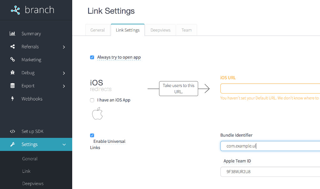- then the app will be launched, and all future clicks of the URL will deep linking the user to the app.