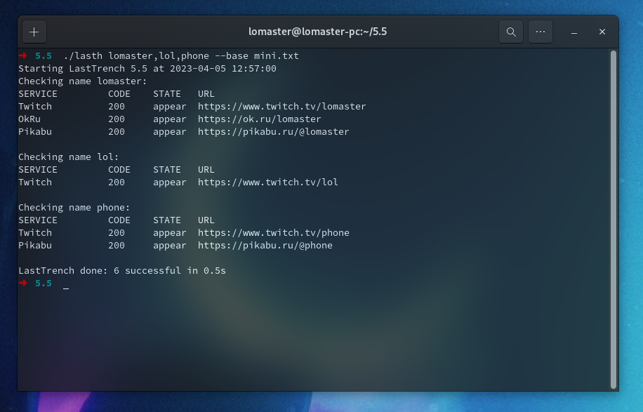./lastn lomaster,lol --txt result.txt