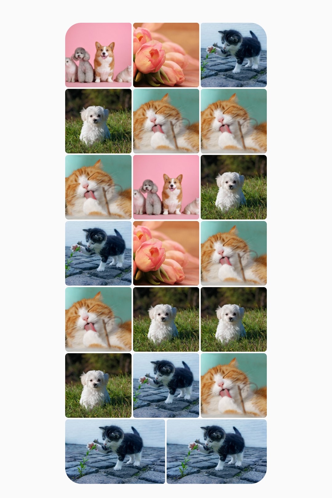 - 전체 이미리 리스트를 3개씩 묶은 후 나머지 값에 대해서 2개로 묶는 ui 구현