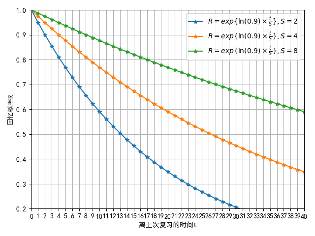 After the retrievability is calculated, the stability can be easily calculated. Based on the collected data, an exponential function can be used to approximate this data and calculate the stability of memory for groups with the same