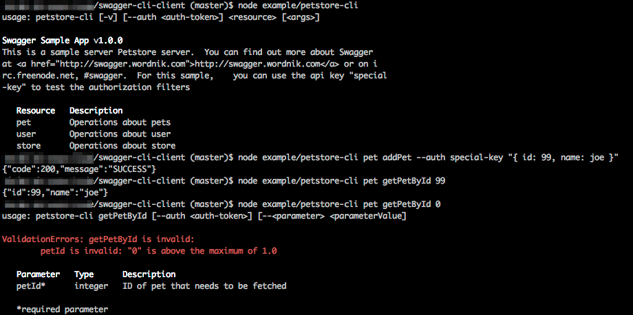 This intended to be embedded within a wrapper application which can provide it the schema object (which is generated using fetch-swagger-schema). For example, here's the petstore-cli file: