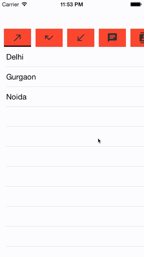 swipeableView.titleBarDataSource = titleBarDataSource //Array of Button Titles like ["Punjab", "Karnataka", "Mumbai"]