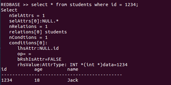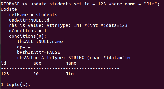 QM模块与SM模块类似,主要向Command Parser提供了用于执行特定的SQL操作。当前的实现支持的SQL操作有Select(包括多表联查),Insert,Delete,Update四种操作。操作的执行主要先通过System Manager获取查询表的结构, 分析后通过调用Record Manager的方法查询并解析查询的结果, 返回给Command Parser.