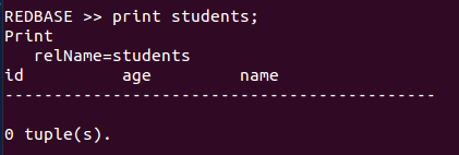 创建一张students表, 其中有三个属性, id和age均为int型(i), name为char(20)类型.