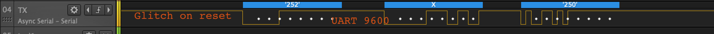 I tested it with a logic analyser, I see the 'X' at 9600bps and the 'Y' at 19200.