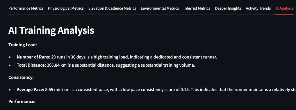 - Provides AI-powered insights about your training