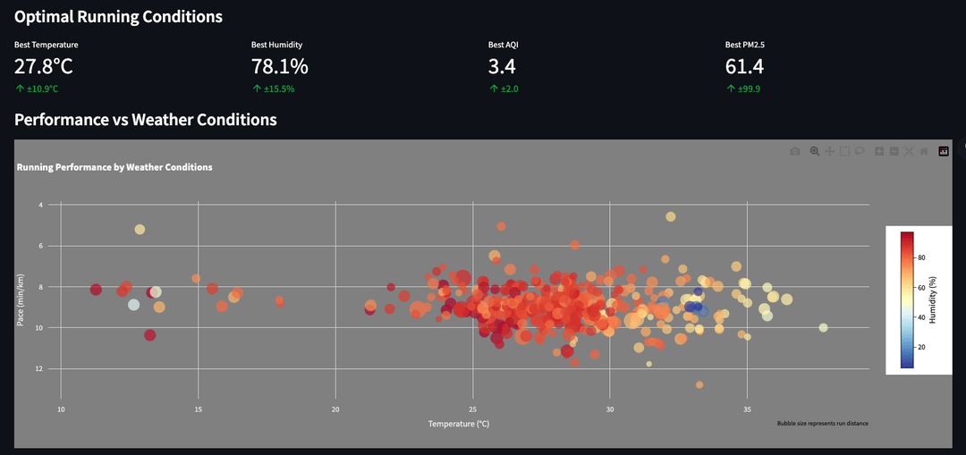 RunInsight AI analyzes your Strava running data alongside environmental conditions to help you understand what affects your performance. It combines running metrics, weather data, and AI-powered analysis to provide insights about your training.