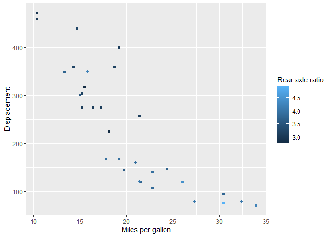 mtcarsdataset some label attributes.Notice in the plot below that all default labels are derived from the attribute, regarless of whether it comes from the global mapping, the layer mapping or data pronoun use.