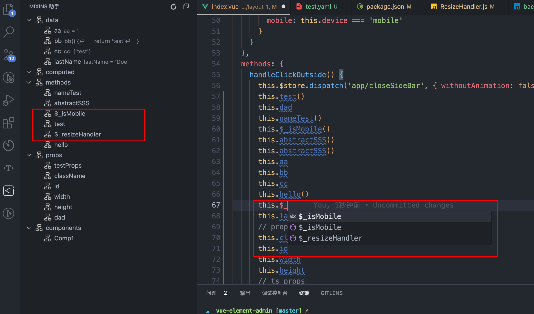 vscode:插件中直接搜索Vue2 Mixins Components Helper安装即可